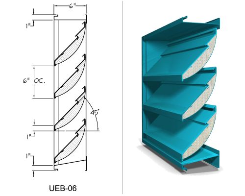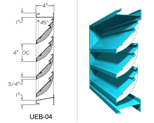 Model UEB-06 has a dual function of weather prodcution and airborne sound reduction, with a stepped blade design that provides an additional degree of weather protection than our straight blade design.