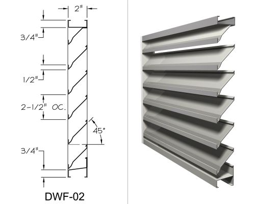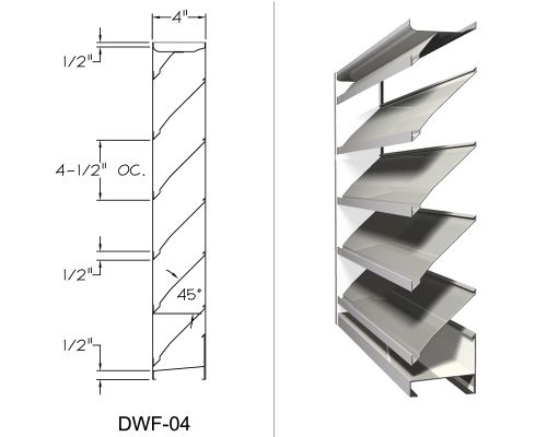 Our formed steel stationary louvers come in straight blade, drainable, and dual-drainable designs. Frames range from 2"-8" depth. These louvers provide high performance ratings and are the formed steel equivalents of our AMCA certified products. We construct these in Galvanized, Galvannealed (Paint Grip), 304, and 316 Stainless Steel to the specification of our customers. The versatility of these products allows them to be fabricated in any shape possible while providing an aesthetic appeal and excellent overall perfomance to any building.