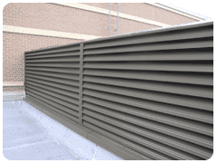 Our Equipment Screens come in any dimension necessary and offer robust wind protection for exposed machinery. We utilize an inverted louver blade concept that allows for sightproof concealment and security in an architecturally pleasing manner. Equipment screens finished with one of our many in-house powder coating colors can not only match the surrounding building color scheme but are also protected long-term from weather-related corrosion, and in turn protect the equipment they surround from the same.